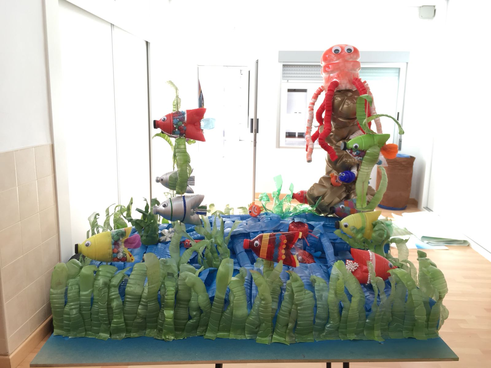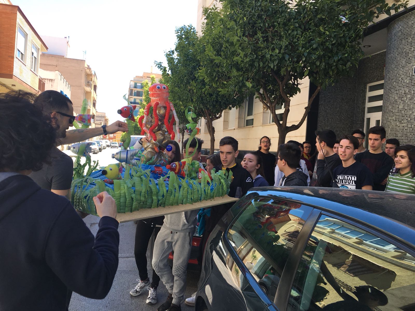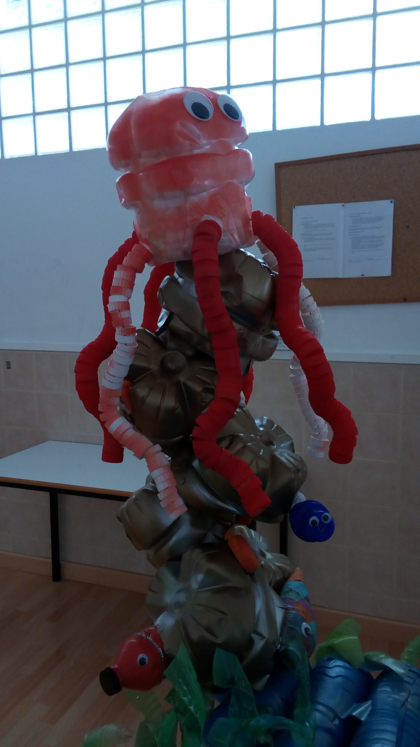 El alumnado de 4ºESO ha realizado una escultura con botellas de plástico, que se ha presentado al concurso de «Recicla con arte», que ha organizado el museo histórico de Aspe, con motivo de la exposición «Hechos del agua», bajo el patrocinio de Aguas de Valencia-Global Ómnium. Dicha exposición estará abierta hasta el 5 de junio.