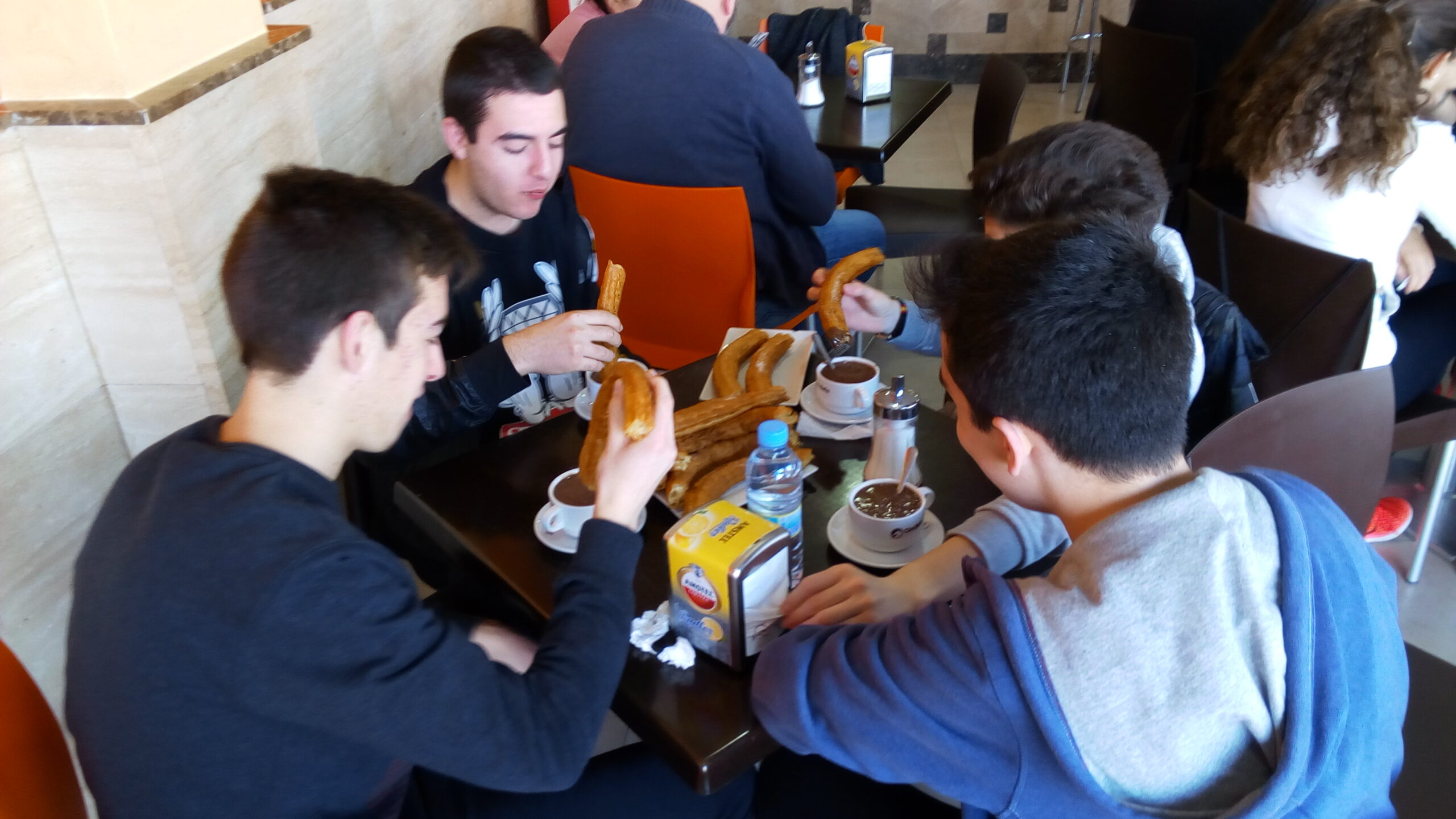 Y como lo prometido se tiene que cumplir, nos fuimos a Novelda ,antes de llevar la escultura al museo, a almorzar churros con chocolate. La caminata mereció la pena. Ya están deseando repetir.